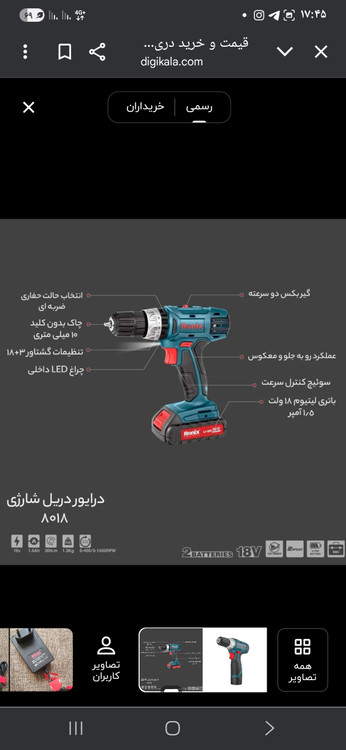 دریل پیچگوشتی چکشی شارژی 18 ولت رونیکس با مدل 8018، با برخورداری از امکانات متنوع، طیف گستردهای از فعالیتهای فنی خانگی، کارگاهی، صنعتی و تعمیرات وسایل مختلف را پوشش میدهد. شما همراه گرامی با یکبار هزینه میتوانید برای همیشه از امکانات و مزایای این ابزار شارژی کوچک اما قدرتمند بهرهمند شوید!